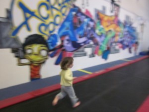On Sunday our son had a playdate with a friend from his old preschool while Matt waited for a new water heater, which they evidently spent dancing to the Black Eyed Peas, so I’m glad I missed it. Did I mention that we spent most the weekend without hot water? It made leaving the house at every opportunity really appealing. Our daughter had a birthday party at Acrosports, an old armory building that now holds circus arts and tumbling classes. Our son has been to a couple of parties there, but on the one occasion that we tried to sign him up for the class, was slow to warm to the idea of jumping off things and possibly hurting himself. This is a characteristic of his personality that has grown on me quite a lot over the years.