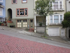 Both Shirley and B.D. liked the feel of riding the Dummy better, and we all agreed it was more nimble. They also noted that the Dummy had better components, including both a lighter frame and disc brakes (optional and an extra charge on the Mundo). I concur that disc brakes should not be optional on a cargo bike in San Francisco. But, as B.D. pointed out, “The Mundo is $1,000 cheaper!” And it comes with fenders and a double-kickstand that is fearsomely stable, but hard to use: this was the only part on either bicycle that I could operate better than they could, having practiced. Neither bicycle, to everyone’s annoyance, comes with hub dynamo lights. “Why doesn’t our bike have lights?” asked Shirley. “Why doesn’t ours?” I replied. Goodness knows you’re not going to be worrying about weight or drag with either bicycle.