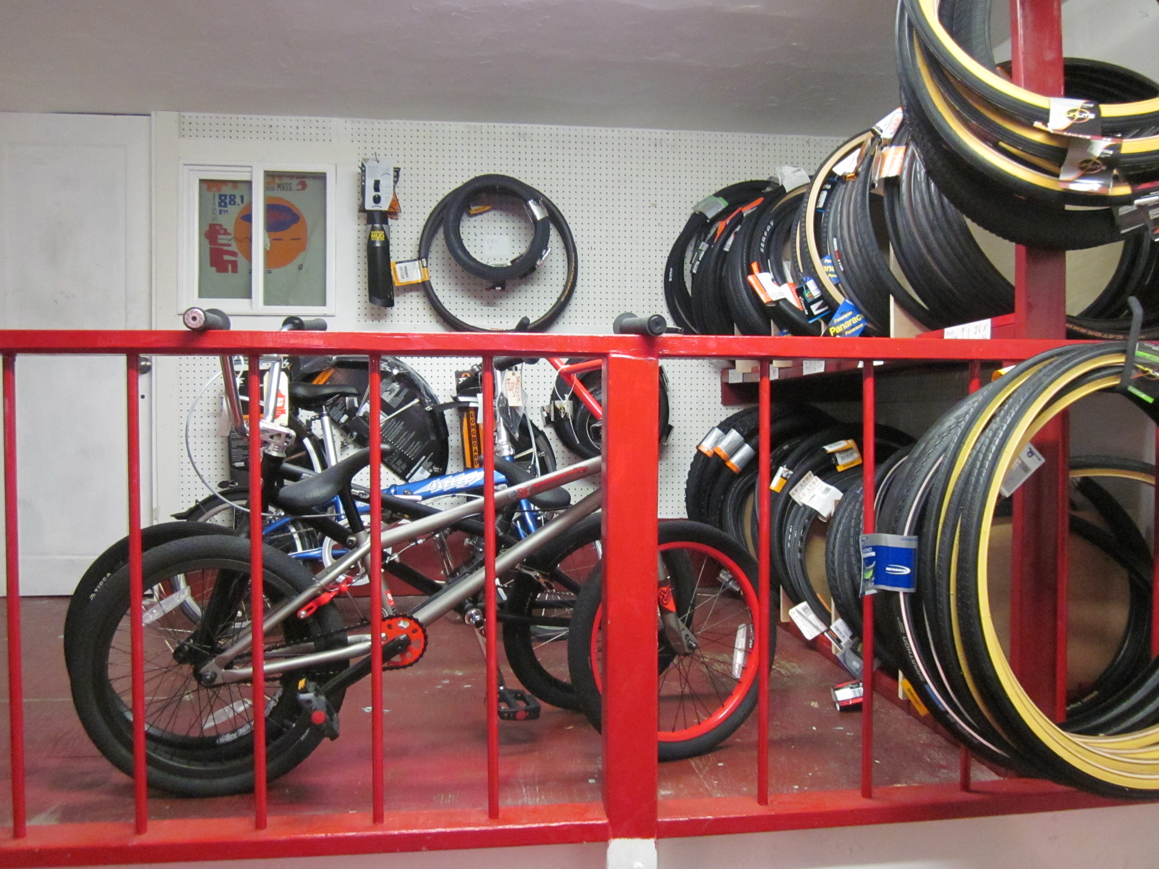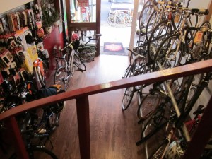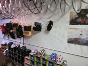 What’s more, on our first visit they weren’t too familiar with children. We usually bring toys for our kids when we are stopping in a store, but this is hopeless in a bike shop: no toy in our possession compares to bike accessories. Our kids bolted for the bike bells and pumps (we figured they could do little damage in this section of the store); one of the owners visibly flinched and asked us to please get them to play somewhere else. This was tough to do; the store is roughly the size of a suburban walk-in closet.