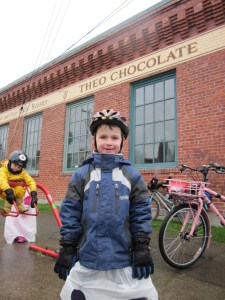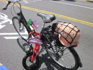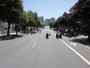 Then on Sunday we walked around the corner to our neighbors’ block party. The neighbors on this street are cooler than the rest of us, and arrange to close off the street once a year. Then they drag out chairs, toys, and grills from their garages and backyards, throw them all into the middle of the street, and start making and handing out food, playing music, and running big wheel, scooter and balance bike races down the hill. My son’s martial arts studio does a show and the local fire station drives over and lets the kids climb on board the trucks. It is fantastic. It was pretty lame to get a bike ride by riding my bike literally around the corner to the block party, but I redeemed myself by running a quick errand a half-mile away partway through the afternoon.