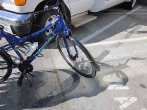 When I took it into Everybody Bikes for a brake check, I had a microcosm experience of bicycling in America. The woman who works there was charmed by my new mamachari: “I’ve heard of these! But I’ve never seen one in real life before!” She thought it was awesome, so practical. The man who owns the shop was appalled. “How much did you pay for this bike? I hope it was, like, nothing.” He took it out for a test ride, and admitted that yes, it rode surprisingly smoothly, but, “The parts are… these wheels… they suck.” I told him I knew it was a POS; that was the point of mamachari. But it was an INTERESTING POS. And he admitted, that yes, the kickstand was amazing, and the rear wheel lock was the best he’d ever seen, and the child seat/cargo basket was beyond awesome. But the parts of the bike that he cared about? It’s true, they suck. This is bicycling in America: the parts of the bike that matter to aficionados are not the parts that matter to everyday riders. How else to explain that my sister, who is married to a former bike mechanic, has no rear rack or front basket on her commuter bike?