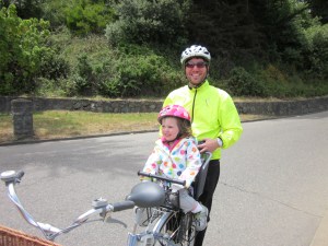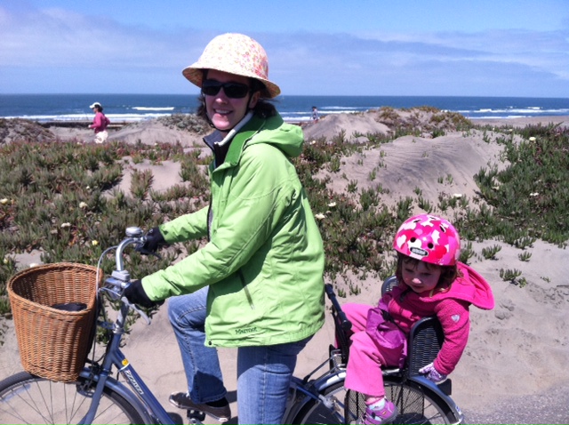 Matt was in Reno with our son so I headed over to Oakland with my daughter the next morning. The second she saw the bike she begged to take it home. The woman who was selling it had no idea what a mamachari was; she had bought it from a co-worker who had brought it over when he moved to the US with his family from Japan. She’d used it for a year and a half to take her daughter to preschool but had just had a second child, and upgraded to a larger bike (a Yuba elMundo, which she loved).