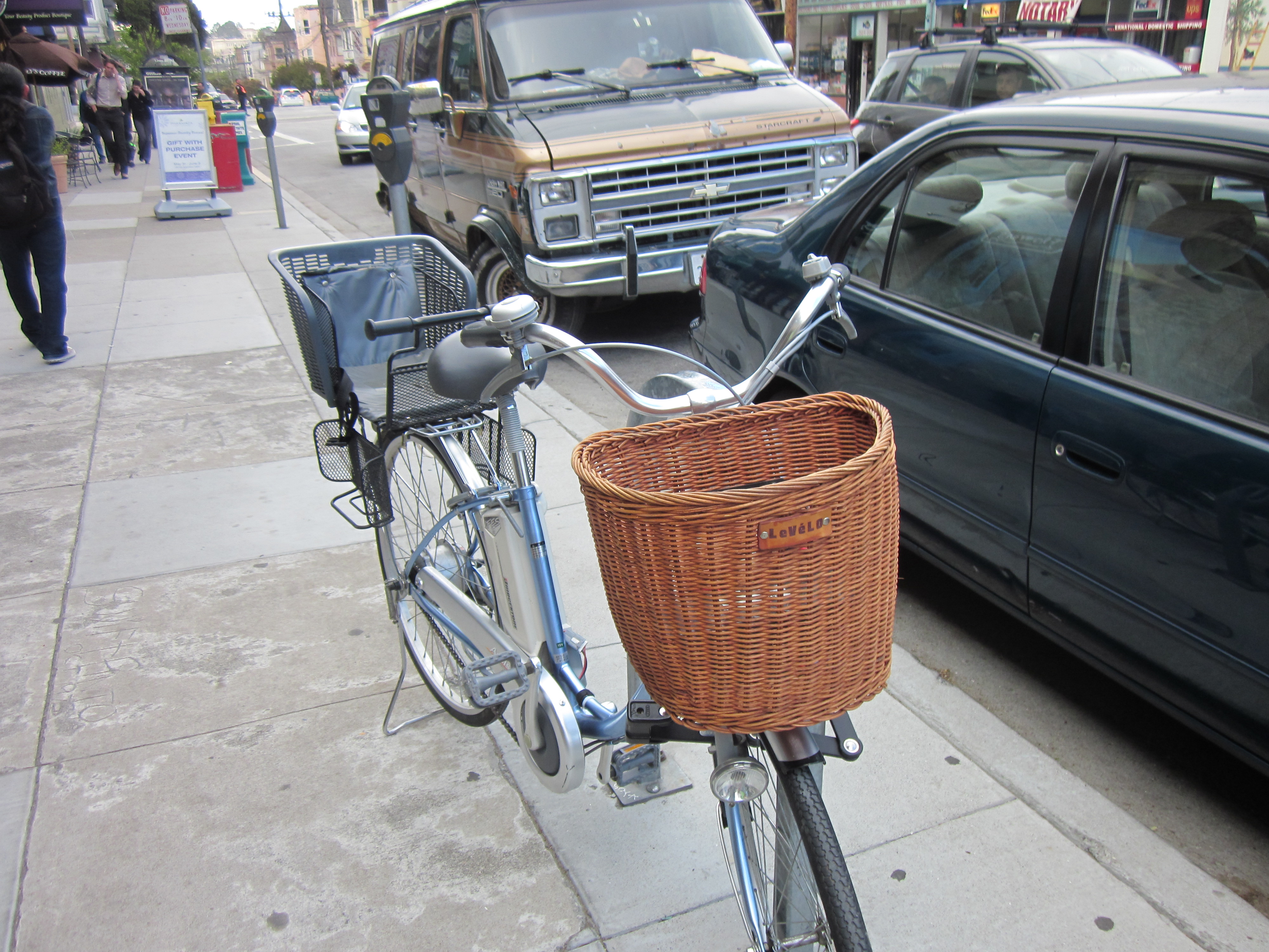 Fortune smiled. Nothing else could explain how I found a genuine mamachari, a Japanese mama-bicycle, listed in Oakland. Apparently they’re also known as oba-chari (for obaasan, or grandmother). “Chari” is Japanese slang for bicycle, from charinko. The etymology of charinko is unclear, ranging from the onomatopoeia for the ringing of a bicycle bell (“Cha-ring! Cha-ring!”) to a typical Japanese modification of the Korean word for bicycle, jajeongeo (“self-rolling-cart”). See also “takusei” for taxi or “seikuringu” for cycling.