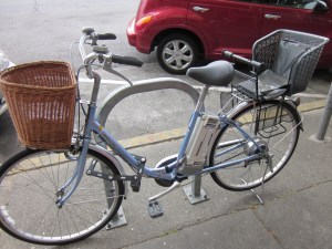 Last month I mentioned that I bought a mamachari. When I saw it on craigslist, I assumed that given the less-than-a-new-bike-at-Walmart price that there must be something wrong with the electric assist. I was wrong and there was not. So for the past three weeks I’ve had the option, when I want to, of riding an electric pedal-assist bicycle. It is even better than I dared to hope.