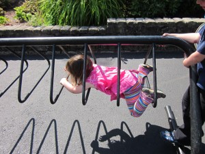 She came up with this all by herself, before I had the chance to show her Loop Frame Love, who pioneered the bike rack tunnel.
