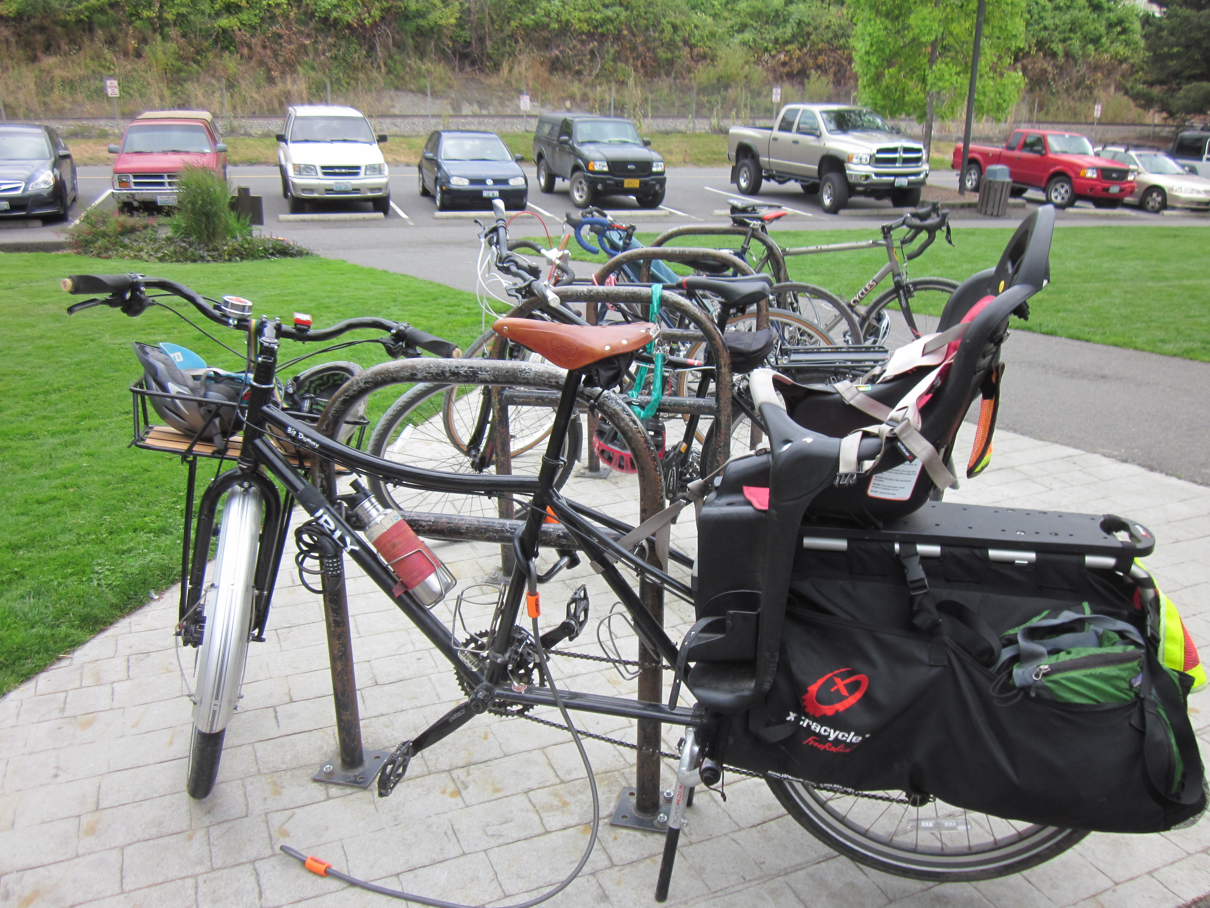 As annoying as all of this can be, we have gotten used to it. However these issues arose again when we started calling around asking about family bikes we could test ride, and why there were so few electric assist cargo bikes designed to handle steep hills in the US. There aren’t many electric assist cargo bikes anyway. When you start asking about taking them up mountains, or adding an electric assist to a bike like a Bakfiets, bike shops often get very quiet. A few shops claimed that electric assists were only designed for mild hills and to go longer distances, not to haul heavy loads up steep hills. This is clearly not true, as there are electric assist cargo bikes all over Europe designed for hills: e.g. an assisted Workcycles FR8, an iBullitt, and according to the German bakery we visited in Bellingham, every delivery bike used in Germany. The whole situation was starting to tick me off. I could get strong enough to haul my kids on long distance rides (and I have). I cannot get strong enough to haul my kids up truly steep hills as they get heavier, and even if I wanted to, putting them on the back of the bike on a steep hill has sometimes led to the front wheel lifting off the ground. They’re not strong enough to ride uphill themselves, and there’s too much traffic for them to be safe even if they could. People who want to ride an extra couple of miles don’t need an electric assist like people who live on the top of steep hills do. WTF, bike manufacturers?
