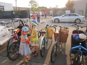 Most parents love front box bikes, aka long johns, aka “those bikes that look like wheelbarrows” because the kids are in front where you can see them and talk to them. When we first started thinking about biking with our kids this didn’t seem like an important consideration. The more we rode with them the more we started to care. I ride the Brompton, which has a front child seat, in places that I probably shouldn’t (it’s not a great hill climber) just because I love having my kids in the front. I can see them and they lean back and look at me. They get a great view and are much more engaged in what’s going on. And my son will sometimes throw his arms around mine to hug me while we’re riding the Brompton and shout, “I LOVE YOU, MOMMY!” I have no words. I will keep him on that seat until he’s taller than I am.
