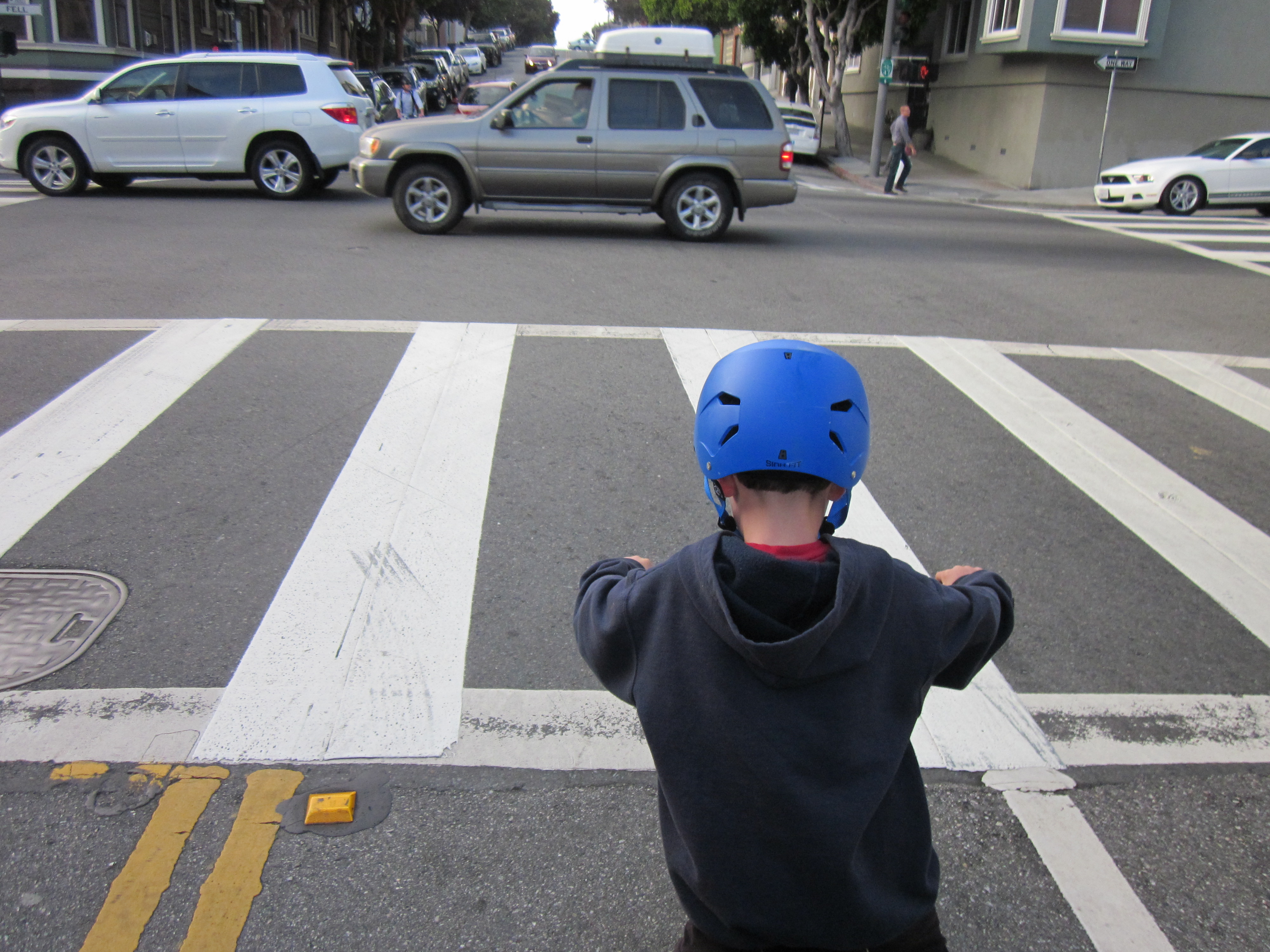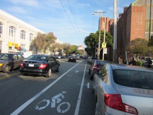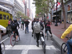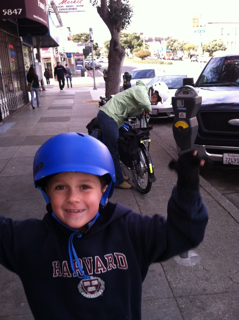 Electric assist bicycles are interesting because they are true car replacements for ordinary people. I have met lots of committed, fiercely strong riders who not only ride to work and for errands and on weekends, but also head for the steepest grades in the city to improve their hill-climbing chops. These guys (they are almost always men) are inspiring, but your average mom of two isn’t going to look at them and say: “Yeah! That could be me!” But put an electric assist on a cargo bike and you are looking at a transportation system that can haul the kids, handle a week’s worth of groceries, dodge traffic, and park right next to the front door of any destination in the city—at the same time. All of this for minimal operating and capital costs, plus enough exercise that you no longer get depressed about not making it to the gym since the kids were born. Many of the factors that make riding a bike seem intimidating—I can’t sweat because I need to look decent for work, no way can I make it up that hill, how am I going to carry the kids, I can’t handle the wind—disappear with an assist. All that’s left to worry about is wet weather. I personally got some waterproof outerwear and found out that I liked riding in the rain, but if I had hated it, heck, we could rent a car on every rainy day in San Francisco without coming close to the cost of owning a car. (In other climates people worry about snow, but from what I’ve read this involves getting some studded winter tires and a cover for the kids and then you’re good.)