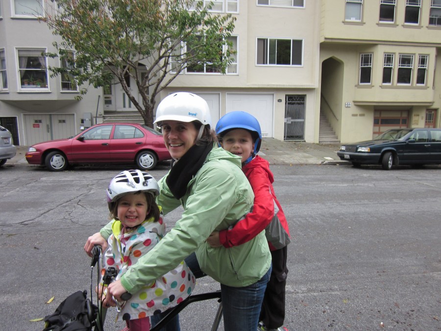 Christmas tree by Bullitt, and three people on a Brompton