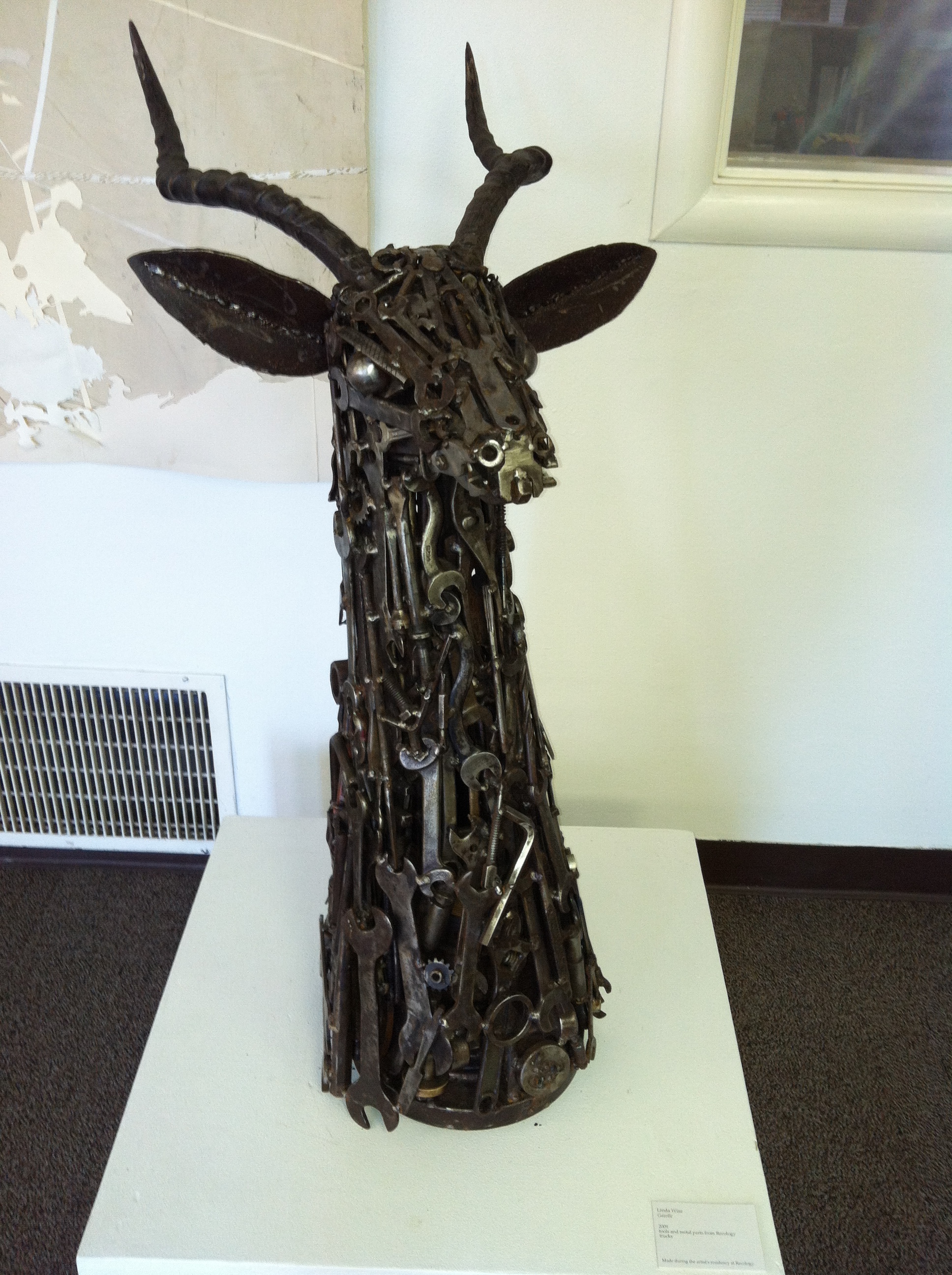Much less depressing was the visit to the Artist in Residence program, where artists are sponsored to create projects out of whatever they can find on site. Much of the art was wildly impressive, and there are regular shows where it can be viewed, as well as an outdoor sculpture garden. Many of the other sites showed where visitors came to drop off household waste sorted through it; construction debris is sorted, furniture is donated to thrift stores, electronic waste and batteries are sorted by type. Recology was also pioneering Styrofoam recycling; clean packing materials were compressed into thin, heavy sticks that could be used for things like crown molding. The process is hopelessly expensive and energy-intensive so it’s more of a demonstration project than a feasible way to handle waste, but it was interesting. The inevitable seagulls were controlled by an on-site falconer who kept four hawks circling all day. Recology had tried bottle rockets, netting and dogs, but the hawks were the most effective. We did not get to tour the compost transfer station, probably the biggest success of the program; San Francisco’s compost is used by California wineries and farms. And I got to take some compost home to show my kids what putting food waste in the compost bin, which they do diligently, really meant. They were completely floored.