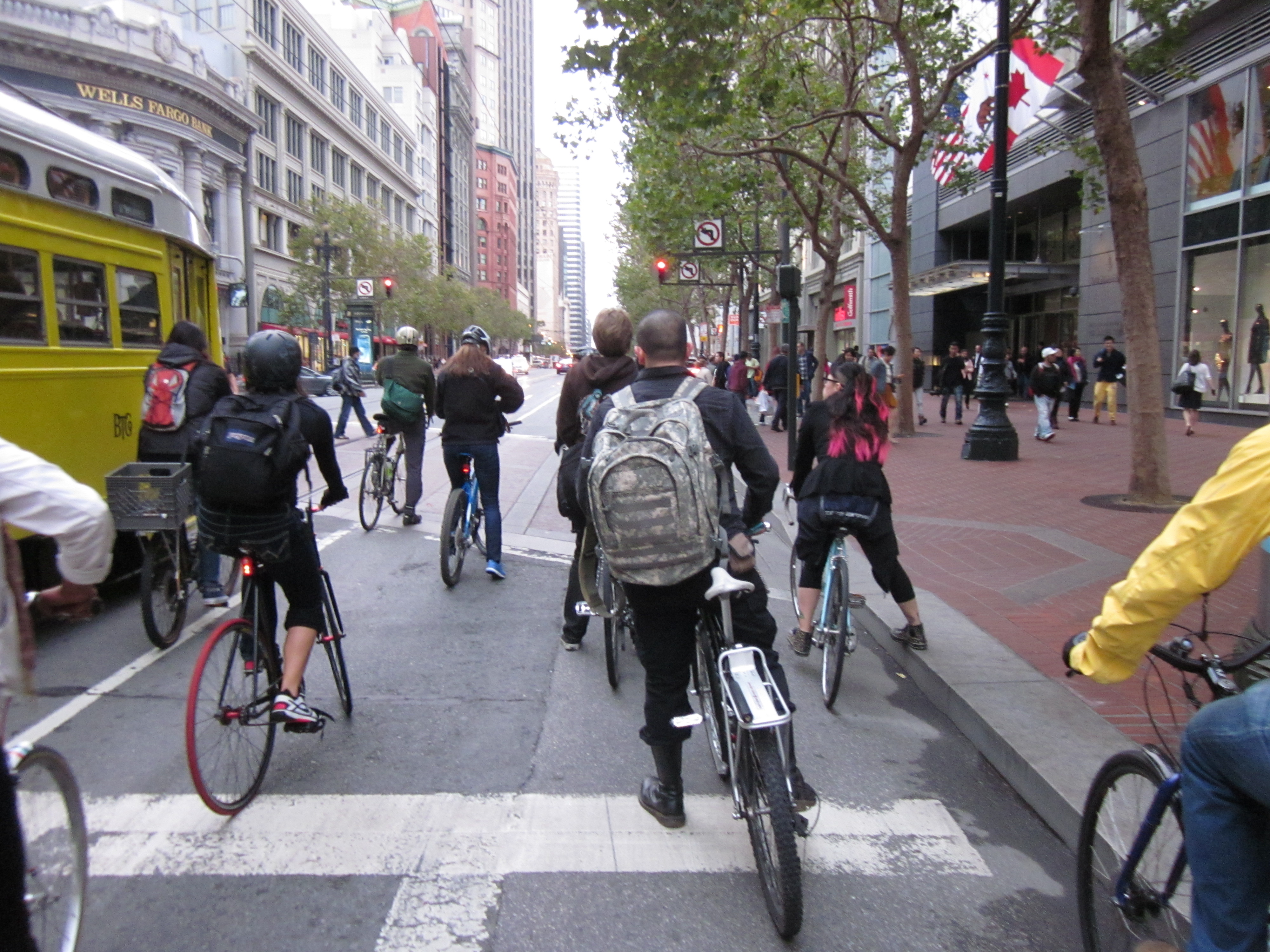 Riding around San Francisco I’ve noticed a difference between women and men on my daily routes. Put in the starkest possible terms, the difference is that women follow traffic rules. It’s not true for everyone, but as a percentages game, if you’re wondering whether a rider in San Francisco will stop at a red light, the odds are pretty good that she will and he won’t.
