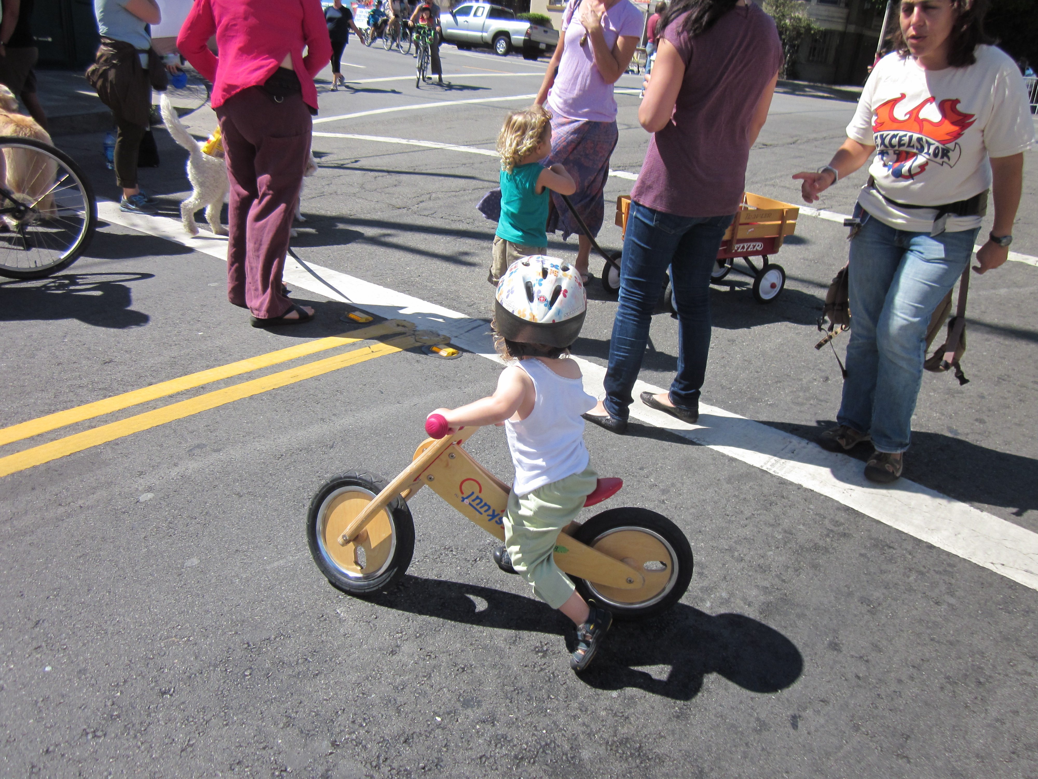 We live in a country where it seems normal that a kid on a balance bike at Sunday Streets–where there are no cars–would wear a helmet. I would like that to change.
