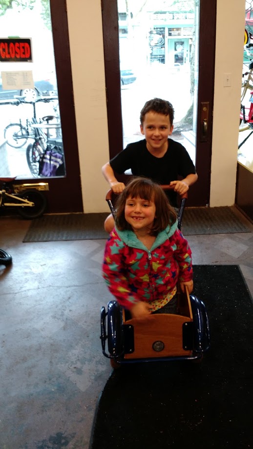 So cargo bikes are more expensive than other bikes to buy and always will be. However there is good news. First, as those hoping for a price break may already have discovered, they last basically forever, retain their value well, and sell quickly on the secondhand market. Second, the maintenance costs are pretty much bupkis. Even if you ran down the entire battery on your brand-new assisted cargo bike and recharged it from zero every night and rode so hard that you had to replace multiple parts on an annual basis and insured it like it was made of platinum, you would still be hard-pressed to spend more than a few hundred dollars a year once you bought it. Compared to the “cheap” used car or moped people sometimes mention as “equivalent,” which can run up those kinds of expenses annually on insurance alone or oil changes alone, let alone the cost of gas and regular maintenance, and which depreciate at a rate that is equivalent to financial hemorrhage, cargo bikes are cheap at twice the price. All the cost is upfront. That’s not trivial, which is why bike shops are increasingly working on the financial side to spread some of that cost over time. Alternatively, you could do what we did and finance your new cargo bike(s) by selling your car.