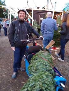 We continue to buy our tree by bicycle. It no longer seems unusual at the lot we frequent. Every year there seem to be more people living in San Francisco, and this year the line to buy our tree was over 50 purchasers deep. The lines to park a car stretched down the block. This kind of thing is why the prospect of buying a car seems increasingly inconceivable.