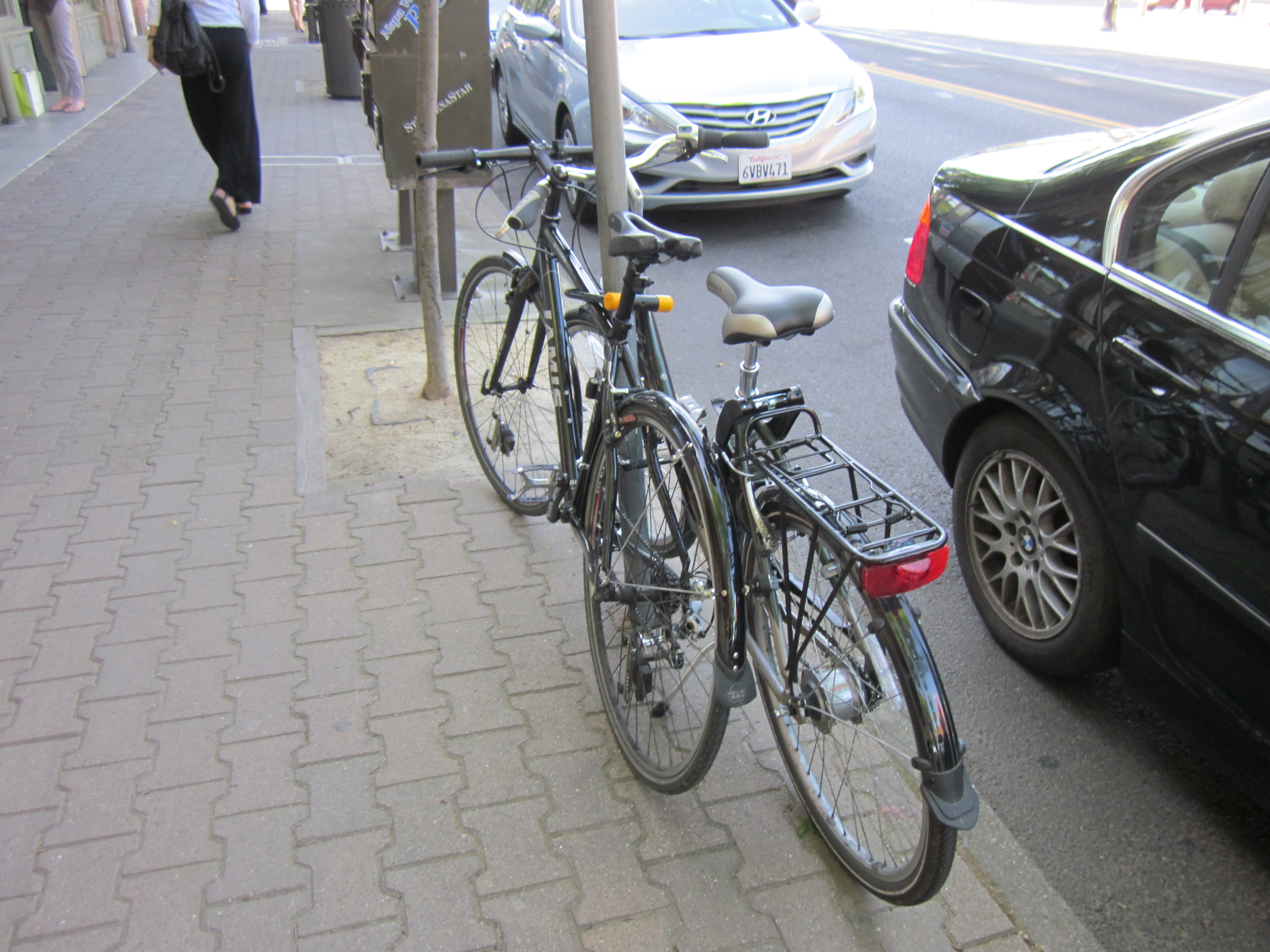 The thought of parking a bike on the street in that neighborhood was unappealing. The Brompton was still in the shop. We were hoping that San Francisco’s law that all garages open to the public must provide bike parking would come through for us. It totally did.