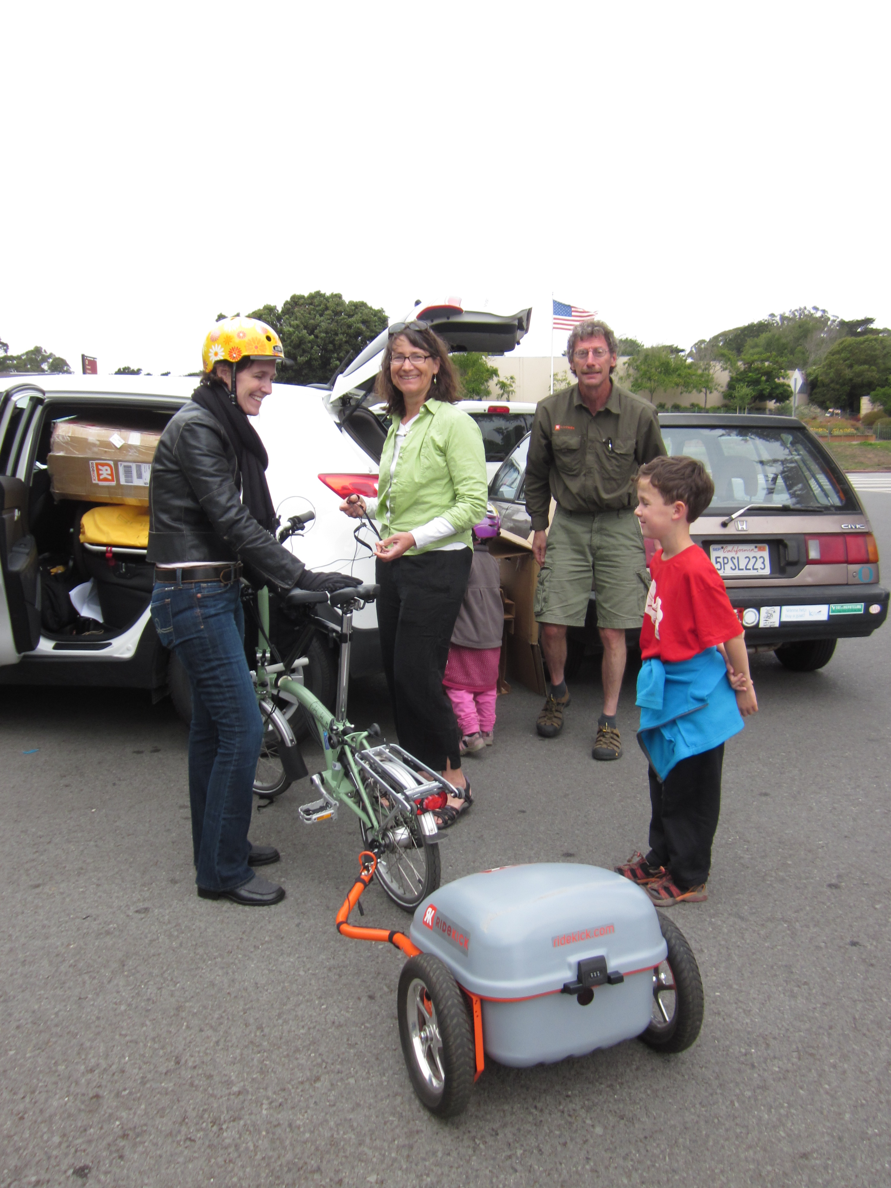 So I wrote to Ridekick, hoping against hope that the child trailer was close enough to production that I could get one by August. The answer was no. But they were coming to San Francisco in August with the prototype to look for venture capital funding, and would I like to try it? Yes!