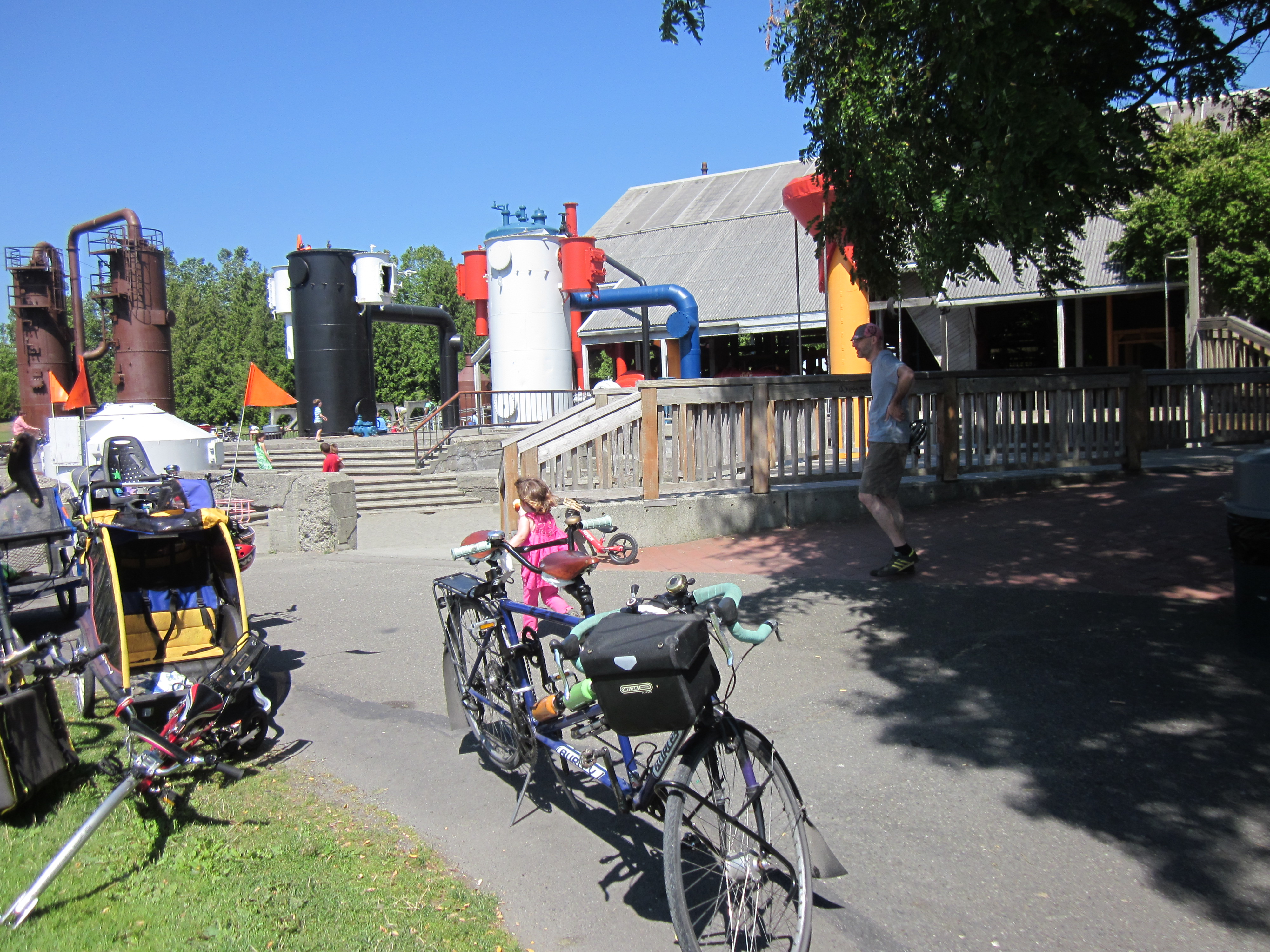 Co-Motion PeriScope: When we were in Seattle we had the chance to try a Co-Motion PeriScope at the very friendly Counterbalance Bicycles, a shop located right on the Burke Gilman trail. Co-Motion makes tandems noted for their hill climbing chops. I spent a lot of time convincing my son, who was in a very grouchy mood after falling off a BMX bike he’d been riding, that he wanted to try this bike. It was very disappointing when we discovered he was still about an inch too short to reach the pedals. The Co-Motion is a sport tandem not set up for commuting in any way; it didn’t even have fenders. But it looked like it would go really fast. I like that. We will return to Seattle again; my mom lives up there. When my son is taller, we will ride this bike. The model we almost tried cost about $3,000.