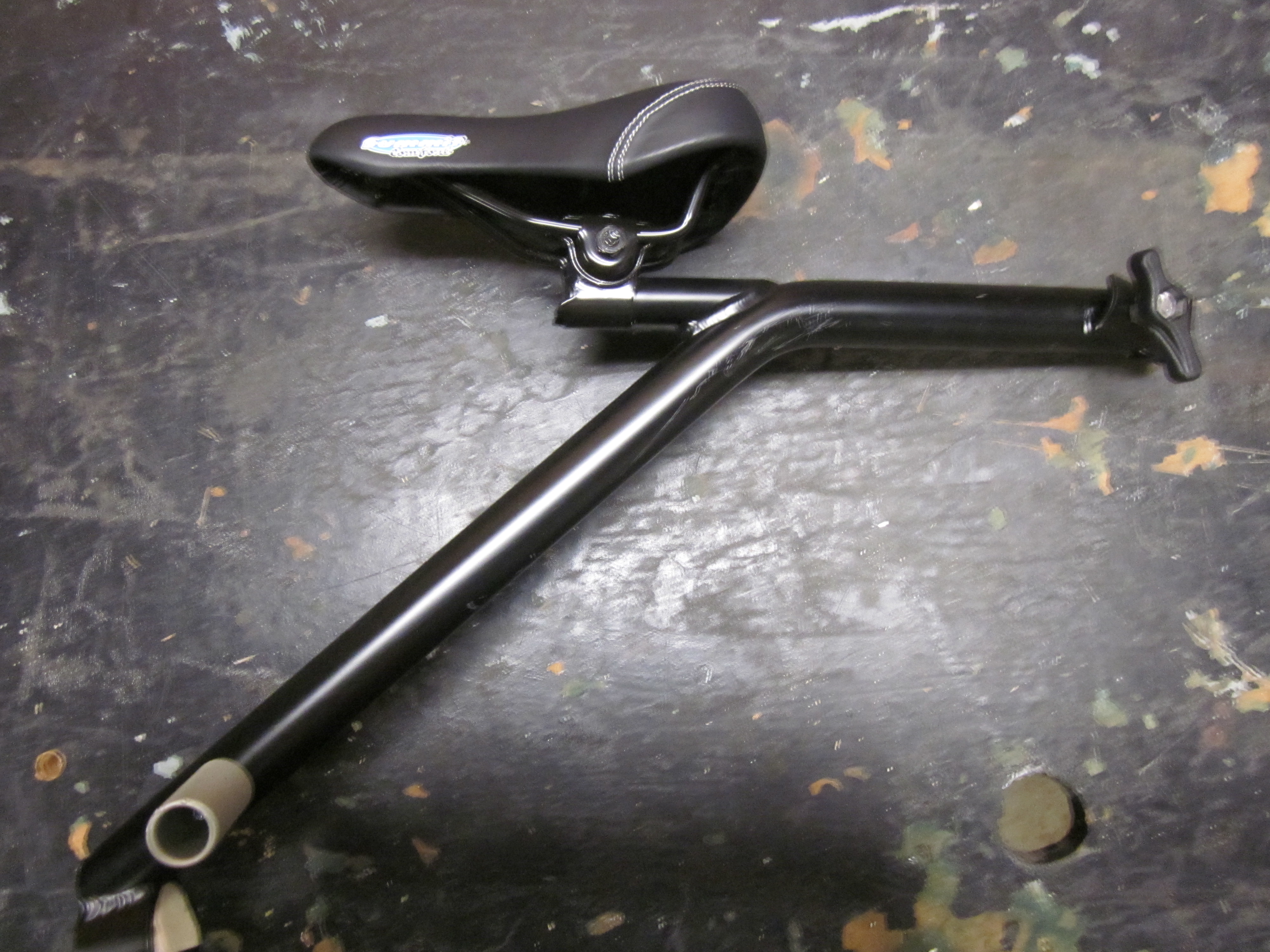 The design of the IT Chair seems to have changed. Formerly it had folding footpegs, but my IT Chair does not. It makes folding the bike with the seat a little more tricky, and you have to get the sequence just right. It also is ridiculously, laughably expensive given that it is essentially just a piece of bent pipe. On the other hand, given the sporadic-at-best production line, IT Chairs apparently lose nearly zero value on resale, when the time comes that we can no longer use it. We were unable to find one used, but did find lots of desperate requests for them posted in the years when they weren’t being made.