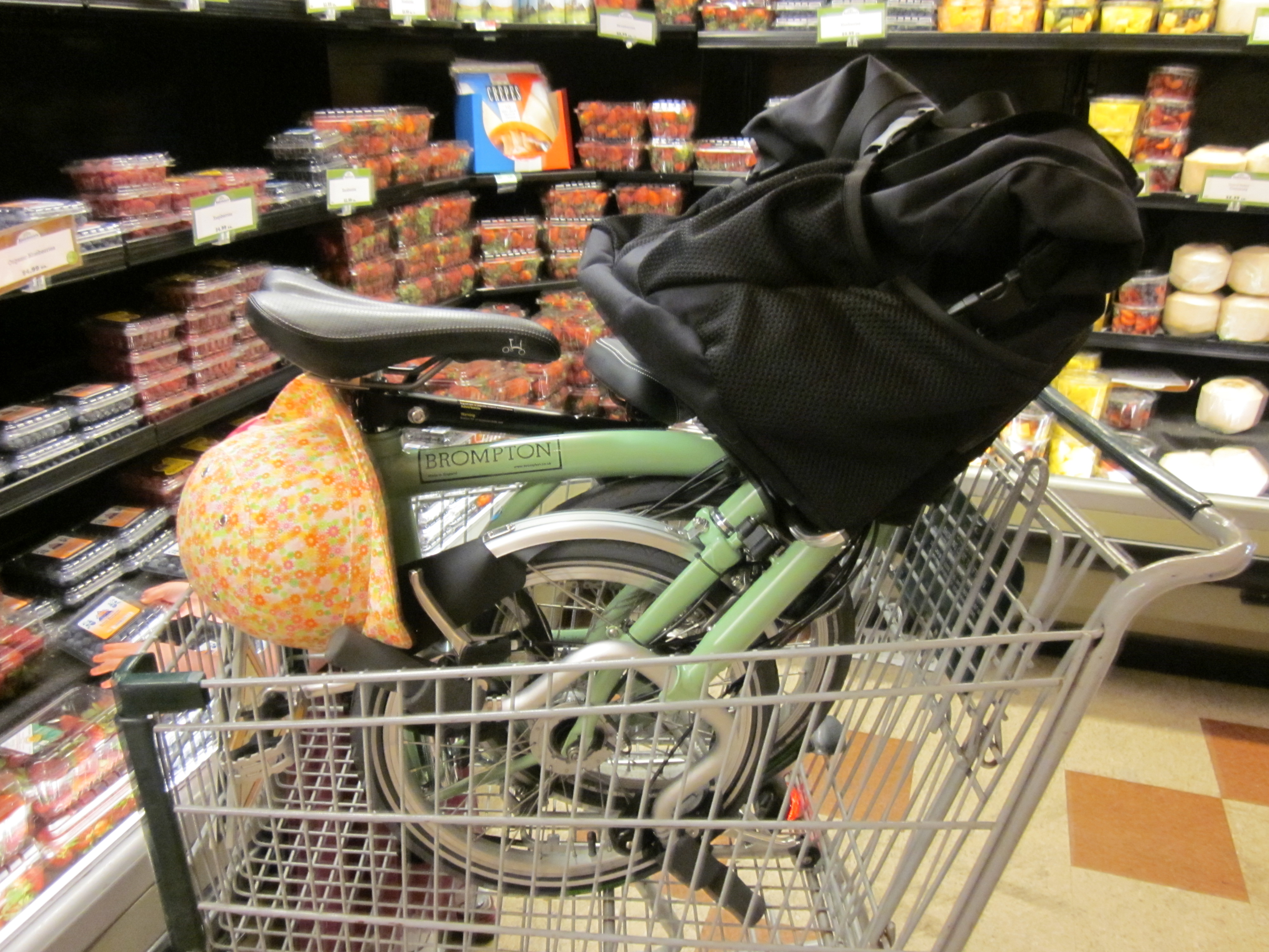 Brompton (with IT Chair) in a small shopping cart