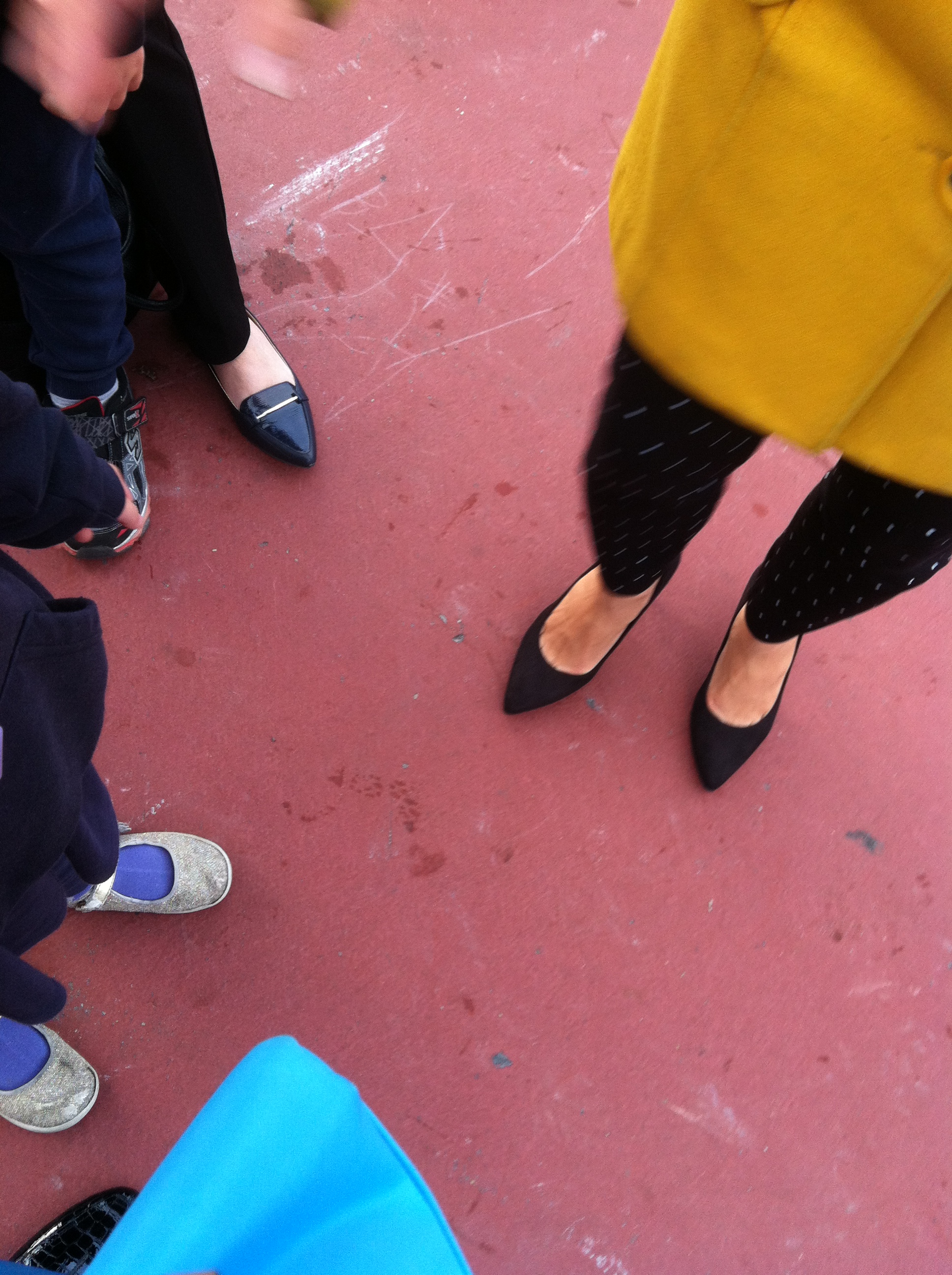 The kindergarten parents are such a cohesive crew that I am seriously considering replacing my beat-up, broken-zippered windbreaker with one of the day-glo yellow ones that they all seem to wear so that I can look like part of their posse. And historically I have not been a fan of day-glo yellow.