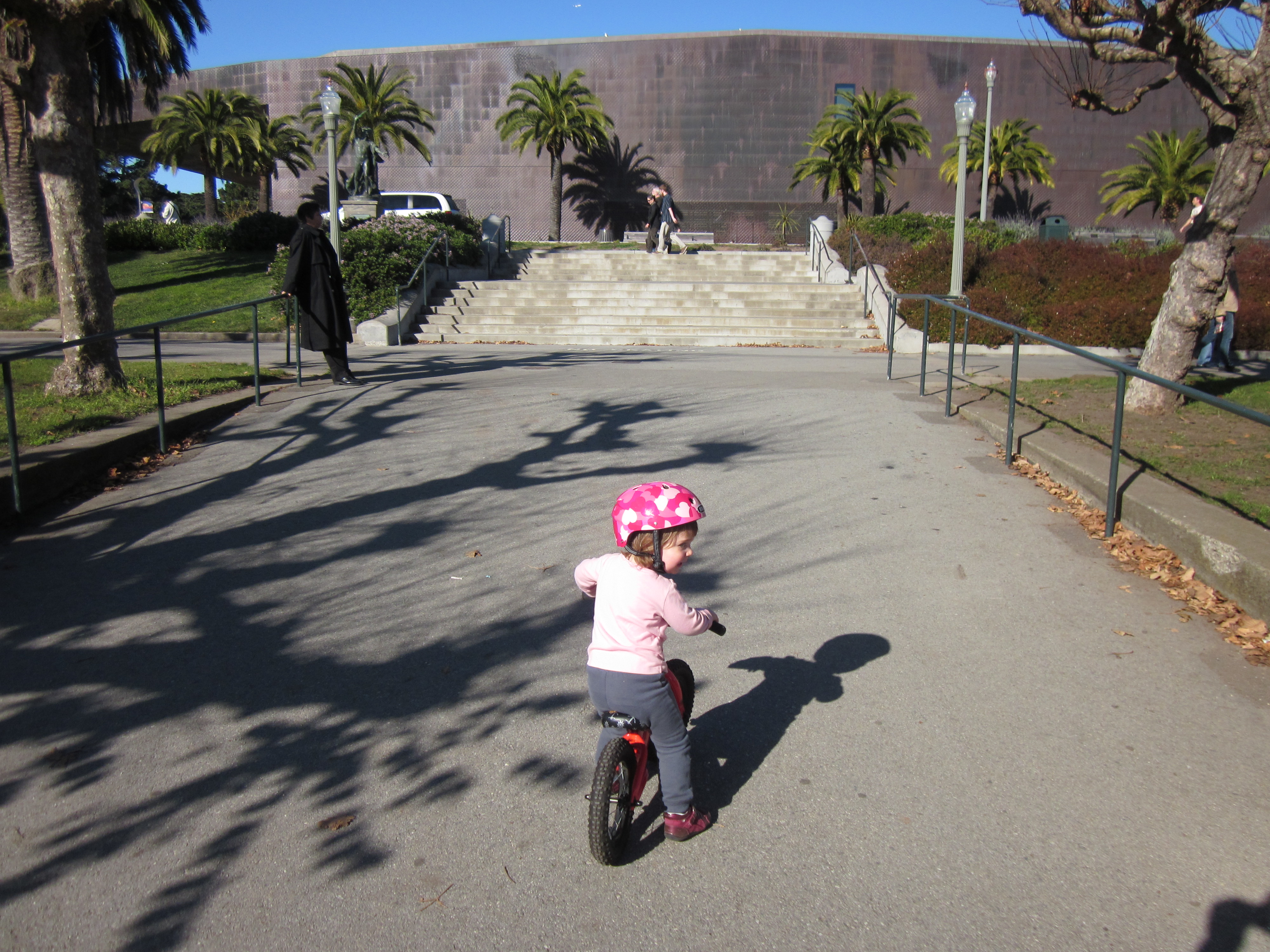 Unlike them, she had a few months of riding under her belt, and thus led their spontaneous little balance bike gang around the Music Concourse. Honk, honk!