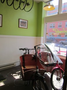 Could I handle a wide bike in normal bike lanes, when I arrived at intersections where the lane is cut in half? Would it be easier if the load were in front where I could see it? These are San Francisco problems, but they’re real for us.