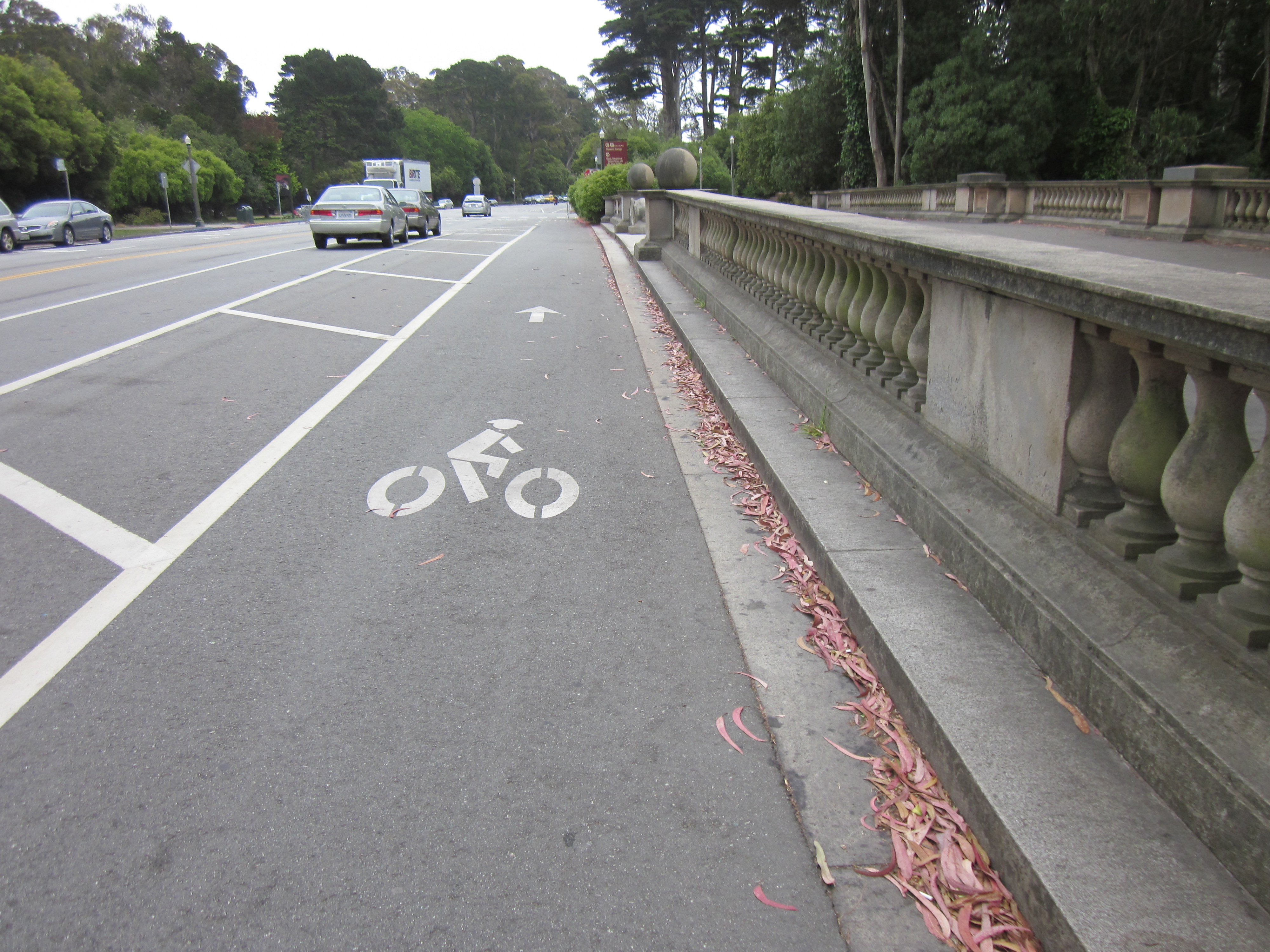 - New JFK bike lanes within Golden Gate Park: 5 feet (152cm) travel width